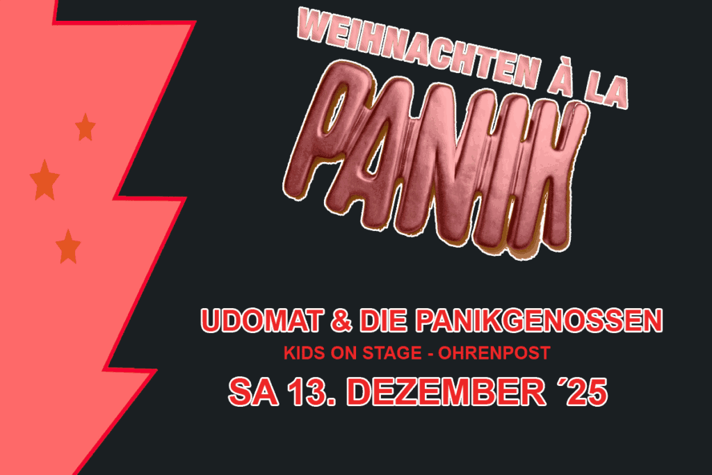13. Dezember 2025 20:00 – 14. Dezember 2025 1:00 Jovel Music Hall Weihnachten für Panikfans WEIHNACHTEN Á LA PANIK Keine Panik – Weihnachten findet in diesem Jahr statt! Am Sa. 13.12.2025 und damit schon zum 9. Mal startet die große Charity-Rock-Revue „WEIHNACHTEN À LA PANIK“ in der Jovel Music-Hall Münster. Dem Initiator und Moderator STEFFI STEPHAN […]
